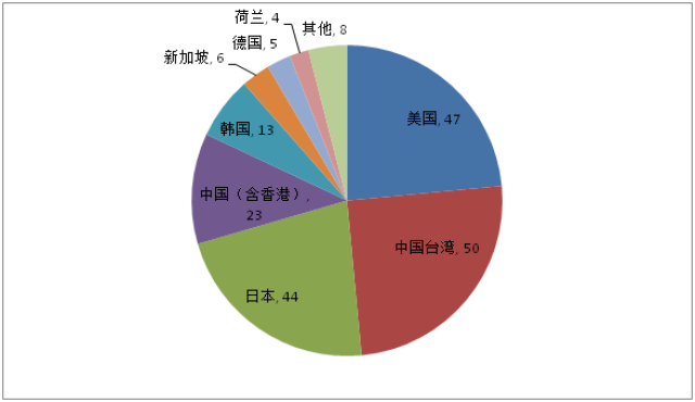 除了美台日中韩以外,还有6家新加坡公司,5家德国公司和4家荷兰公司。