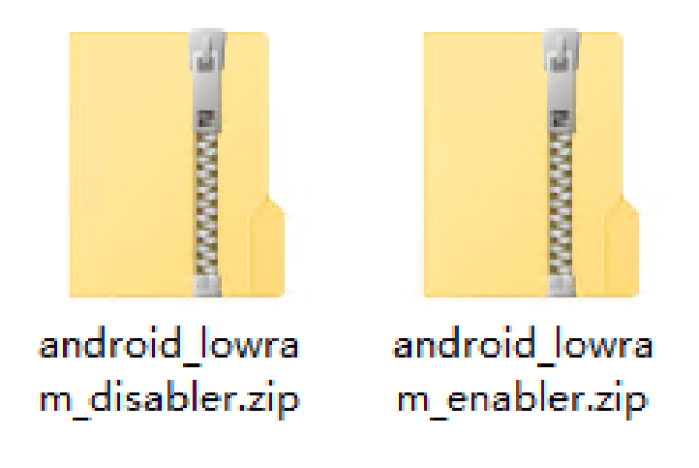 补丁分为两个 zip 包:android_lowram_enabler.zip 和 android_lowram_disabler.zip,只需要直接在 Recovery 中刷入对应的 zip 包,就能启用/关闭 Android Go 特性,就像刷入 GApps 一样。