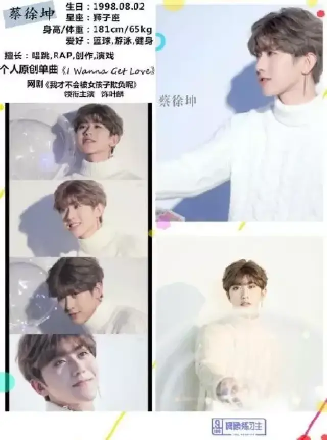 蔡徐坤以SWIN组合出道,曾去过韩国培训三个月。然而2017年初,组合官博再放成员照片时,已经没了蔡徐坤的影子。直至《偶像练习生》发布消息,大家才知道蔡徐坤解约以个人练习生的身份参赛。
