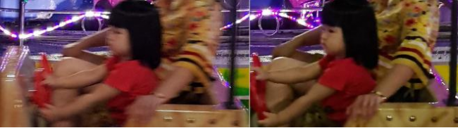 抓拍其实主要看的是快门的速度,只有高速的快门才能够快速的捕捉到被拍物体移动的每一帧。在这方面华为P20 Pro能够实现零延时快门,iPhone X也号称能够实现零延迟快门,但是就算都是零延迟也是有区别的,通过放大之后大家就能够看出来,iPhone X已经把移动中的孩子拍模糊了,而华为P20 Pro依然清晰。