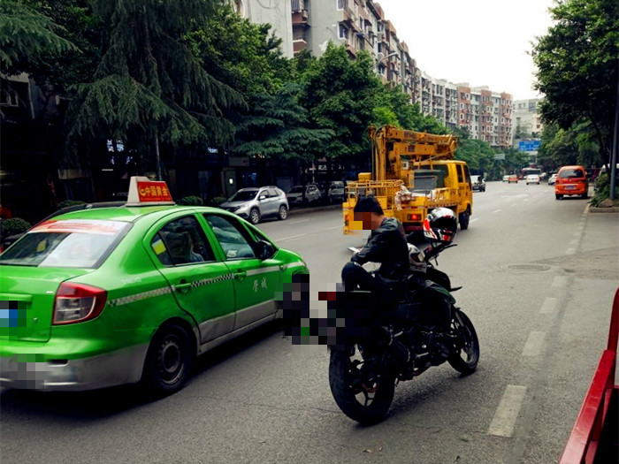 “看上去太危险了,很担心出意外,这道路上什么样的车都有,小伙坐在摩托车上,摩托车还停靠在机动车道范围内,这样如果出了事,后果不敢去想象”报料市民说,这样的操作令他很担心。