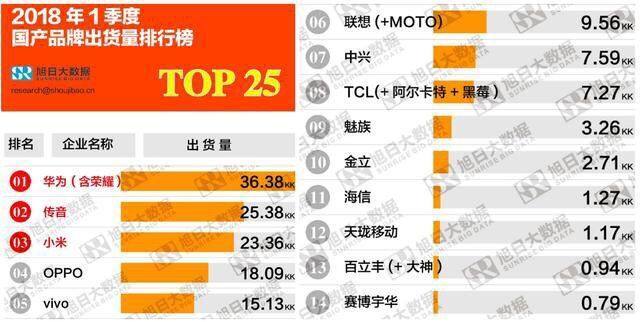 如今手机市场竞争是越来越激烈,各大厂商为了吸引消费者也是各显神通,而有竞争就会有成败,相比一些厂商市场份额的不断提高,也有一些厂商市场份额在不断降低,无独有偶,近日知名手机专业数据研究机构旭日大数据也是发布了2018年第一季度国产手机品牌出货量排行榜。