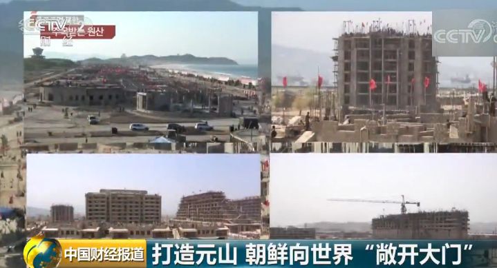 从韩媒公布的画面来看:以朝鲜著名景区“明沙十里”海岸为中心,酒店、度假村等游乐设施的建设工程已初见雏形。