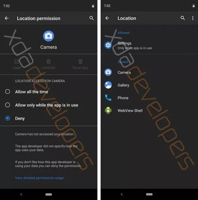 Android Q 还将更多地使用 Android Pie 中推出的隐私功能。 在 Android Q中,您可以选择应用程序在后台运行时是否可以访问该位置。