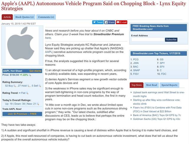据外媒报道,由于iPhone市场不景气,苹果不得不削减非核心计划的开支,这其中苹果的自动驾驶汽车就受到了直接的影响,那提起苹果的这个项目相信大家都不会觉得陌生,从2014年起,有关“苹果汽车”的报道就不绝于耳,
