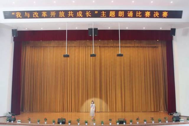 比赛开场是由经济系包子涵同学带来的朗诵《改革开放显华章,风雨涅槃展新颜》,舞台上的她优雅从容,用自己最美妙的声音向党和国家致敬。