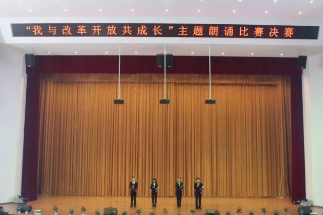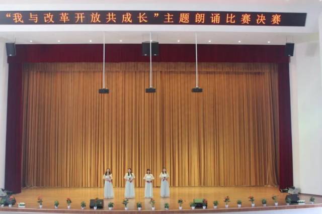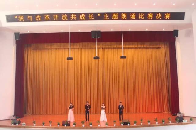 紧接着,来自人文与艺术系的张子东、齐梦、杨俊、胡钰媛表演的《四十年赞歌》,生动清晰地讲述了改革开放40年道路上的风雨兼程,一路艰辛;高度赞美了改革开放40年的丰硕成果。让我们再次感受到党和人民的力量无限伟大!