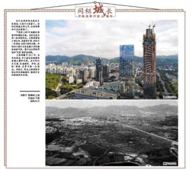 深圳晚报则推出《同框城长》栏目,栏目名称选取十分巧妙,以两张照片同框对比的方式,反映深圳这座改革开放标杆城市的沧桑巨变,致敬改革开放40年,彰显这些年来深圳经济社会发展取得的举世瞩目的成就。