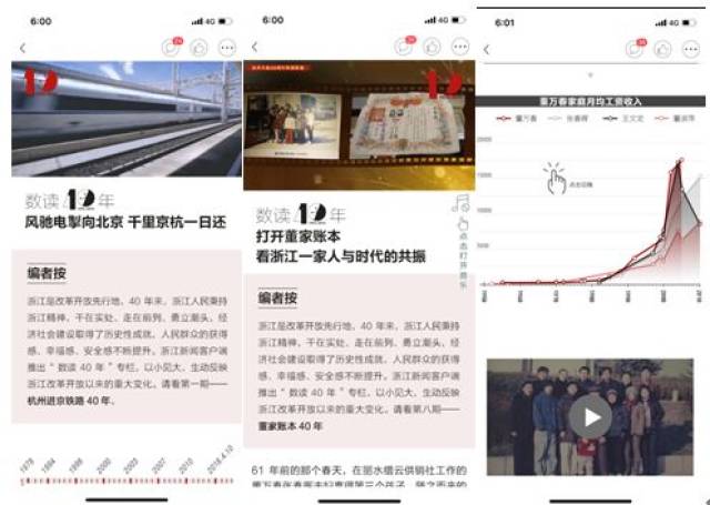 浙江新闻客户端推出“数读40年”专栏,从杭州至北京铁路线的变化、对运动的态度、城市绿化的增长等小切口展开,以数据新闻的方式,呈现改革开放40年来浙江大地的变迁,本地化特色鲜明。