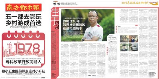 南方都市报则早在今年的5月2日起就推出了“生于1978——寻找改革开放同龄人”大型报道,该系列报道由南都和广东省社科联合作推出,每一期都以1978年出生的广东普通人为主角,涉及各行各业。报道以时间顺序讲述了人物40年来的经历,并选取了其中的重点年份进行重点叙述。在呈现上,系列报道还有一个固定元素,就是对每个人物都会抛出三个固定的提问,分别是“四十不惑,回望过去,觉得自己最幸运的一点是什么?”、“用一句话概括你对改革开放40年的感悟?”、“置身于新的历史时期,你对未来有什么期待?”。借每一个人物对于同样问题的不同回答,反映时代的发展和对未来的期待。