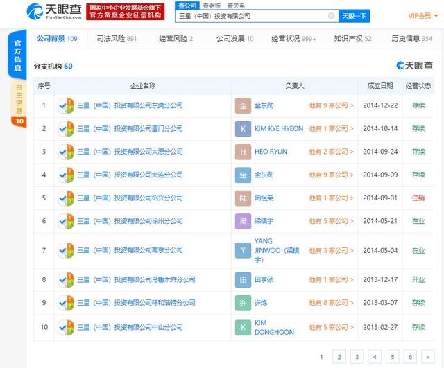 天眼查数据显示,三星(中国)投资有限公司成立于1996年3月,注册资本1.97亿美元,由三星电子株式会社全资持股,法定代表人为三星电子大中华区总裁权桂贤。三星(中国)投资有限公司有多家对外投资,包括三星(中国)投资有限公司深圳办事处、惠州三星电子有限公司、天津三星电子有限公司等。此外,还拥有60家分支机构,包括三星(中国)投资有限公司大连分公司、三星(中国)投资有限公司厦门分公司等。