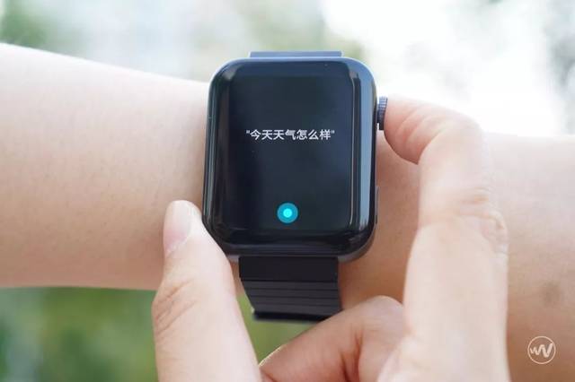 小米手表支持小爱同学的语音交互,长按表冠呼出语音助手,可以查天气、股市、导航、调用 APP 等。