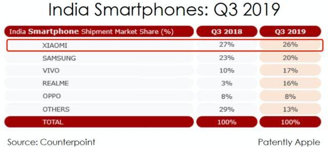 据市调机构Counterpoint数据,今年第三季度,小米在印度的市场份额为26%,已连续9个季度位列第一。印度是全球第二大智能手机市场,也是小米最大的区域市场。目前,小米手机约有60%的海外市场销量来自印度。
