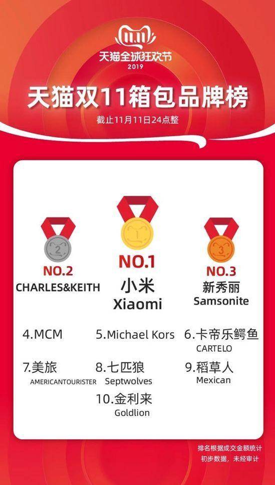 箱包热卖背后的小米今年天猫双11,小米排名第一的类目,不是手机,也不是IoT产品,而是“箱包”。