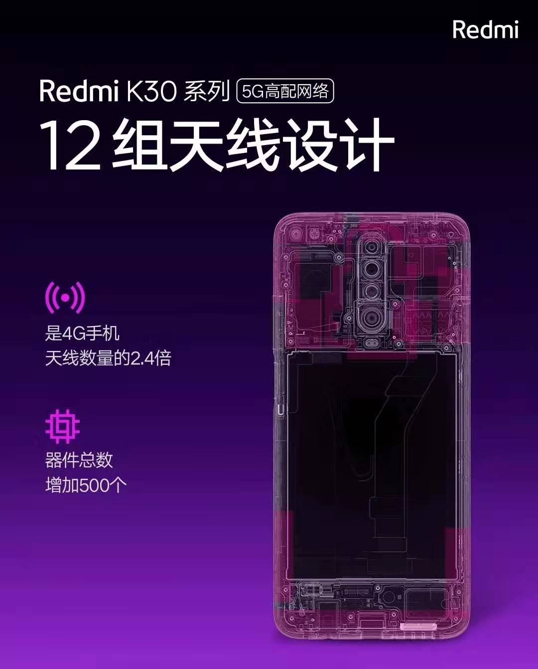 此外,Redmi K30 5G为了确保稳定、高速的5G网络连接,整合了12组天线 ,支持5G三路并发技术,可同时连接2.4GHz WiFi、5GHz WiFi以及5G移动网络,一方面可以动态择优选择网络连接,另一方面也可以叠加网速,保证5G时代全场景的高速 连接体验。