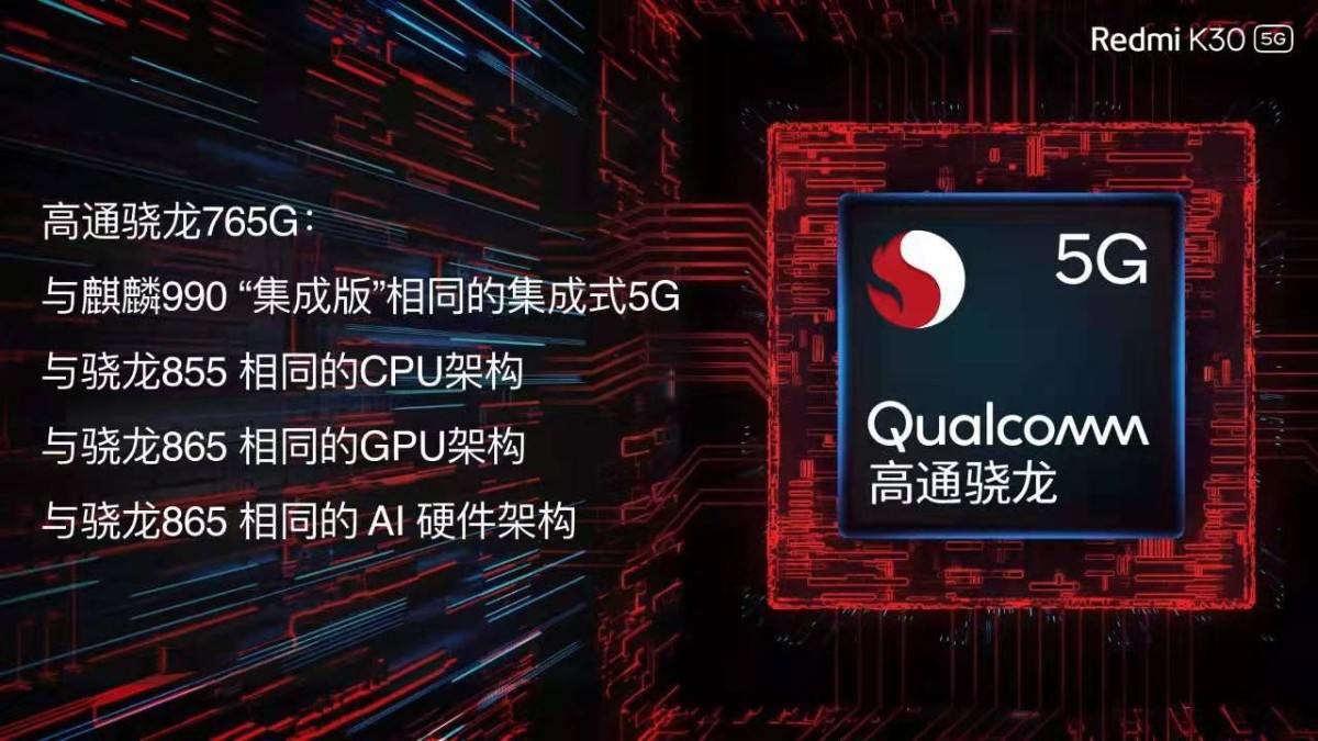 作为Redmi品牌首款5G手机,K30 5G在全球首发高通骁龙765G移动平台,这是高通首款集成式5G处理器,支持SA/NSA双模5G网络,采用最顶级的7纳米制程工艺,在大幅提升性能的同时功耗进一步降低。