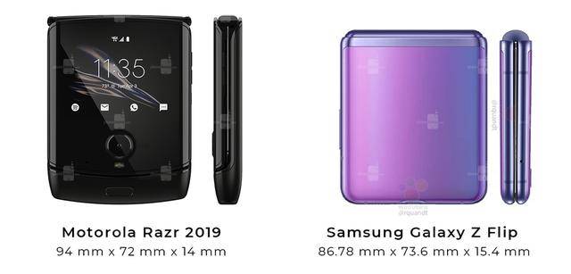 三星Galaxy Z Flip和摩托罗拉 Razr同为翻盖式折叠屏手机,二者的便携性都值得称赞。摩托罗拉Razr内部配备6.2英寸的屏幕,比例为21:9,分辨率为2142x876,外部屏幕为2.7英寸;而三星Galaxy Z Flip内部则采用6.7英寸显示屏,外部显示屏则为1英寸,折叠起来和3英寸手机一样。