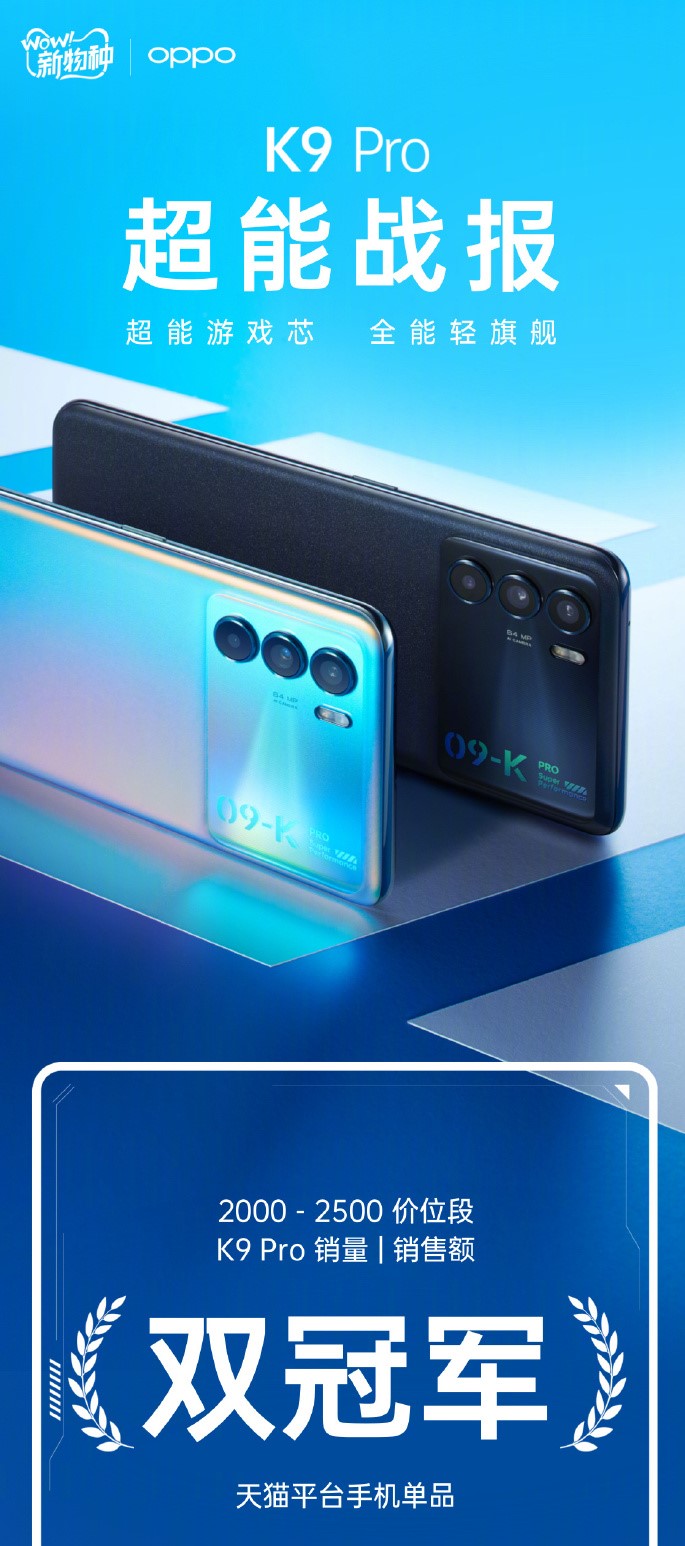 (OPPO K9 Pro首销赢得天猫平台2000-2500价位段天猫平台销量&销售额双冠军)