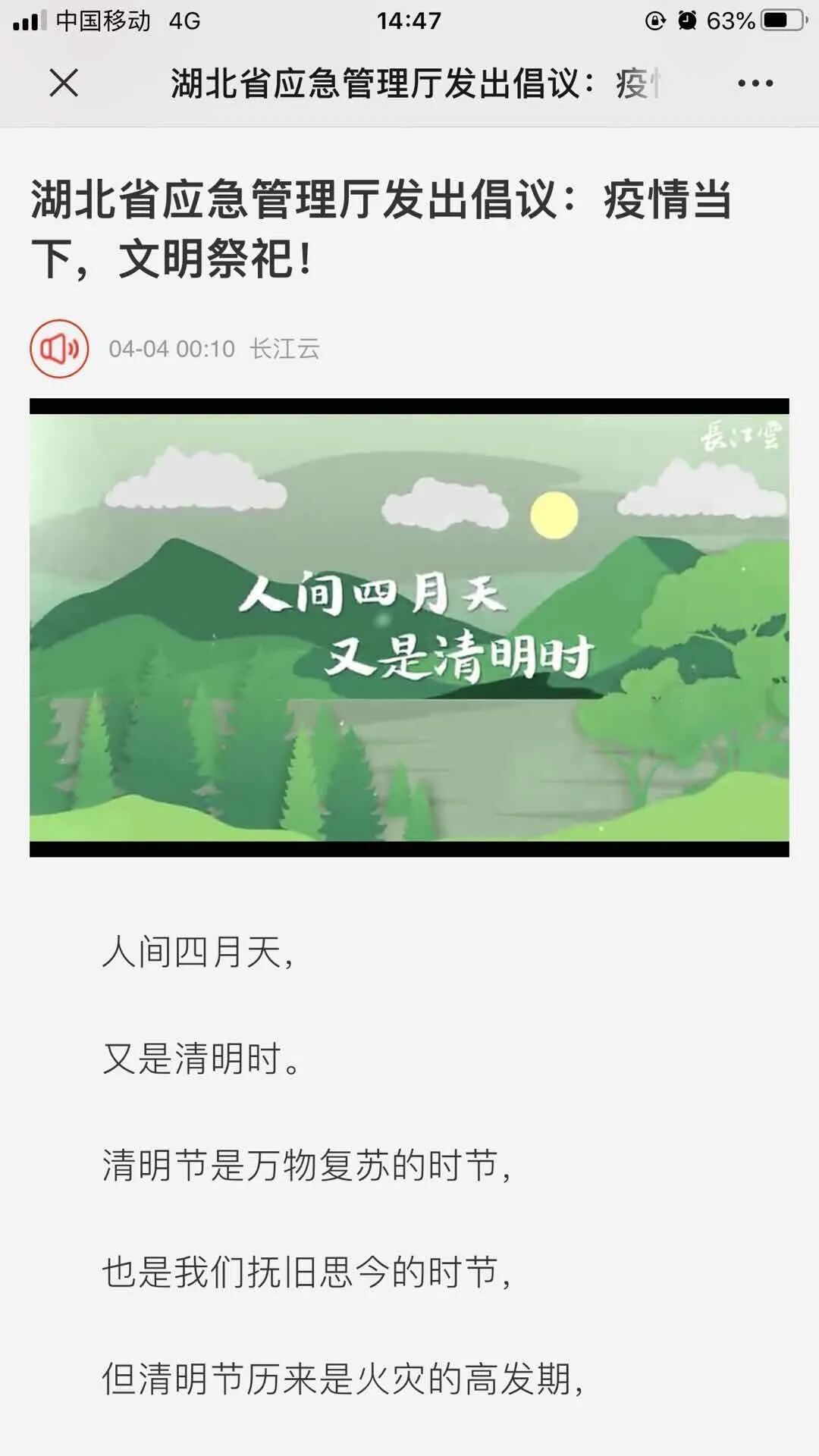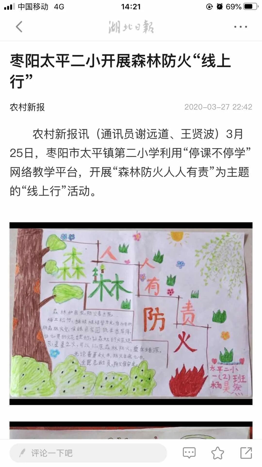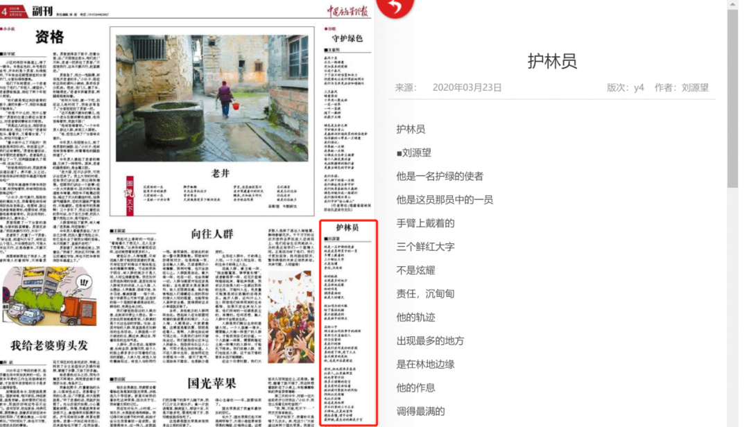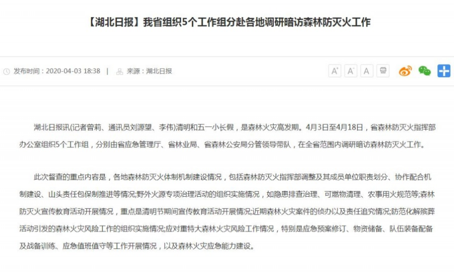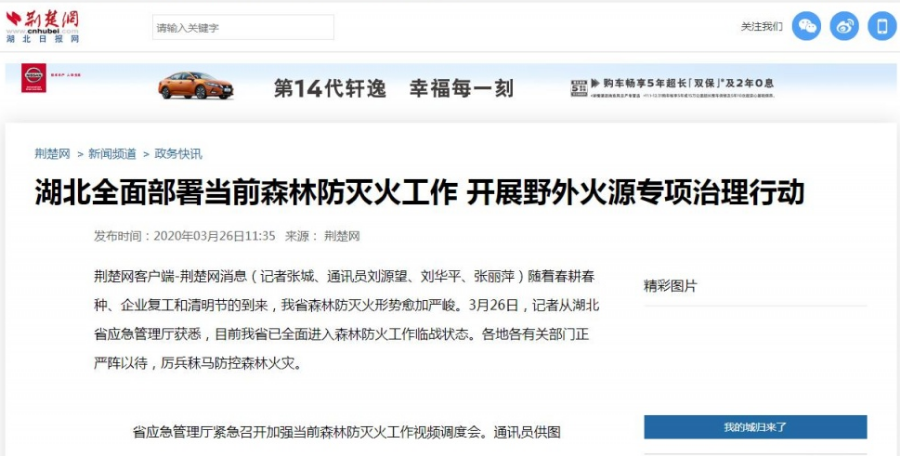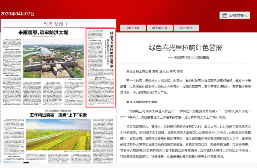 ▲ 中国应急管理报发表原创诗歌《护林员》同时,湖北广播电视台各频道滚动播出森林防火提示信息暨公益广告。