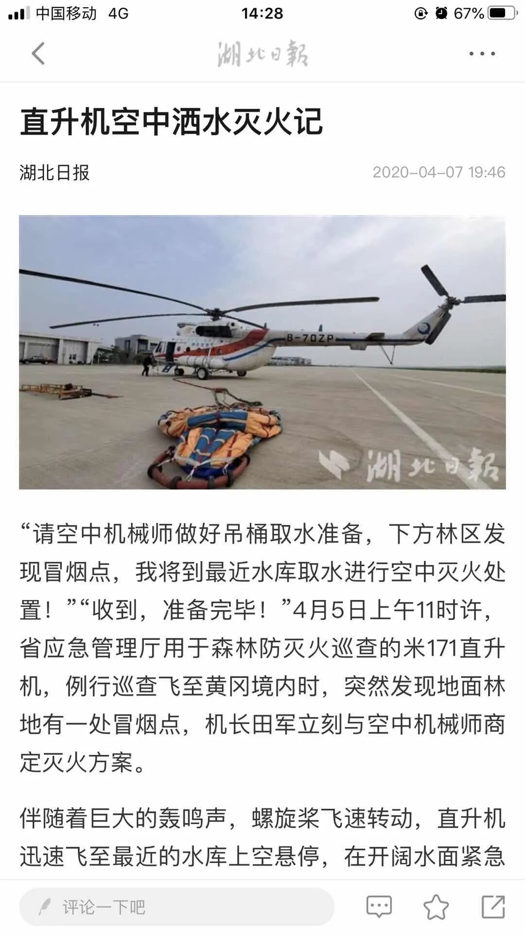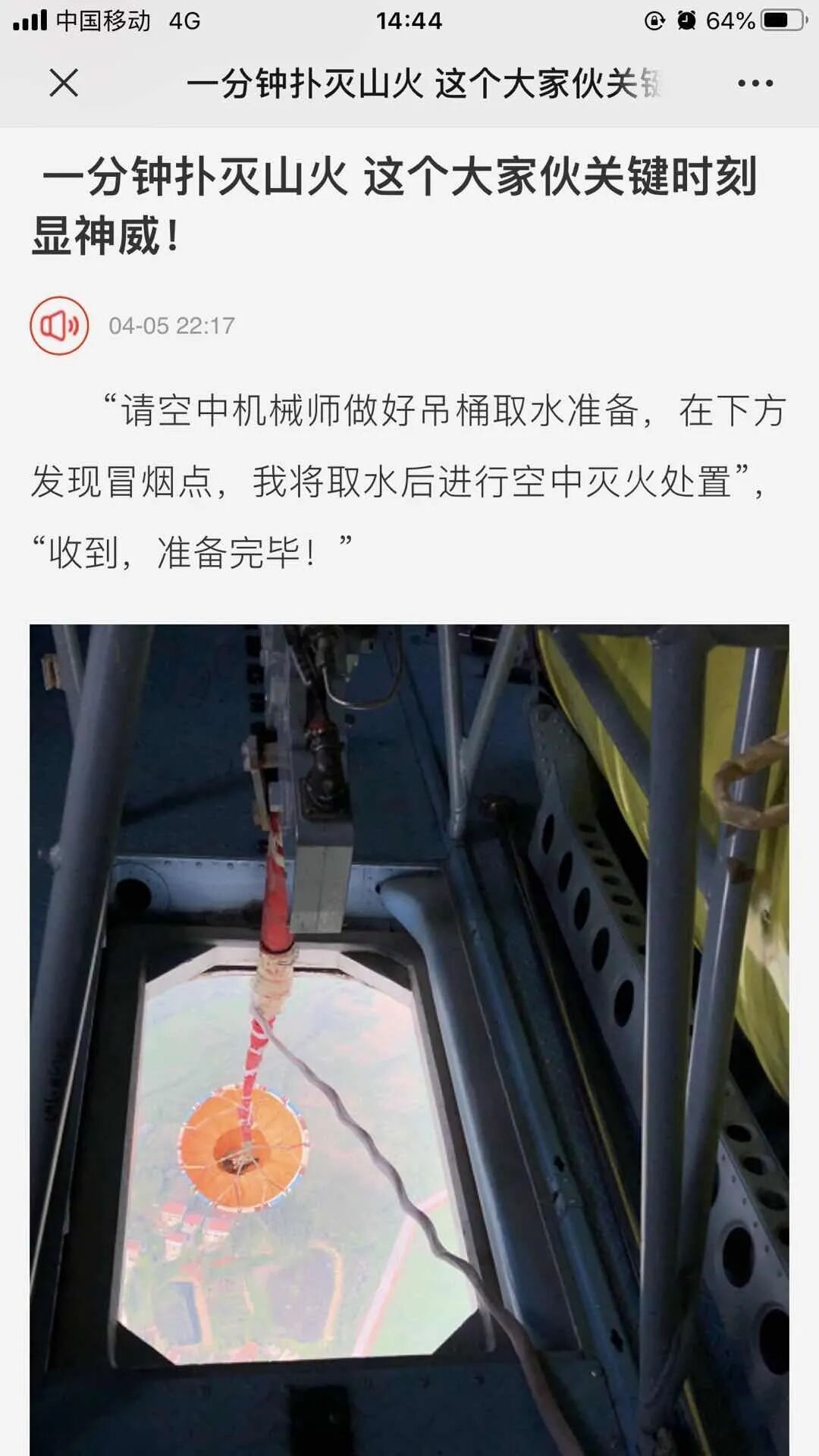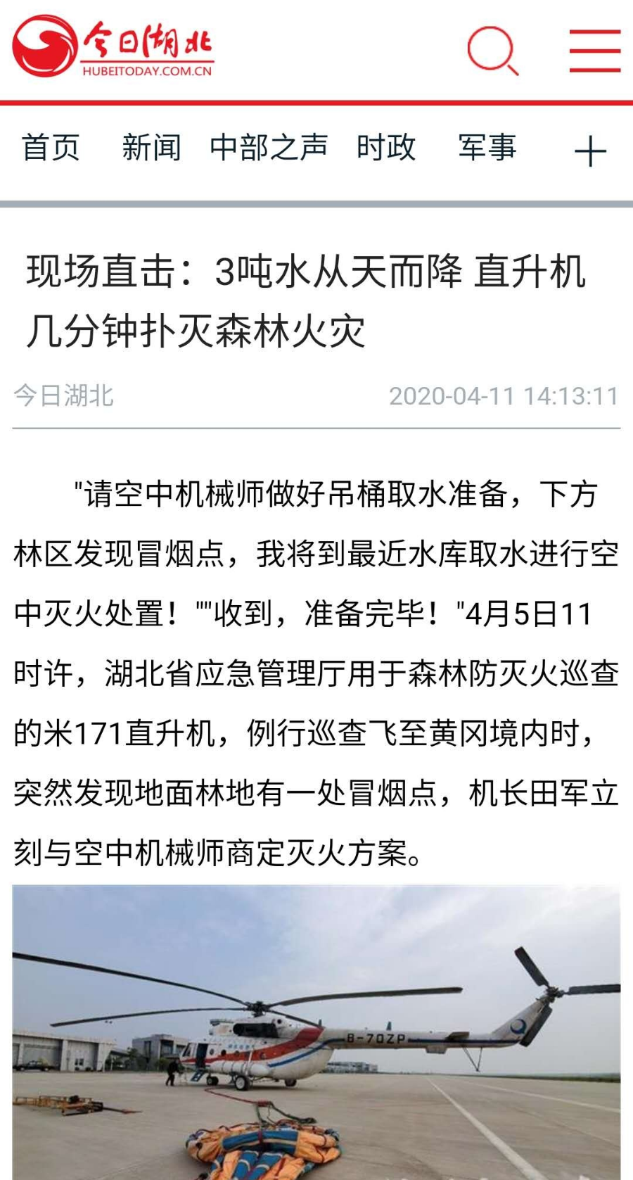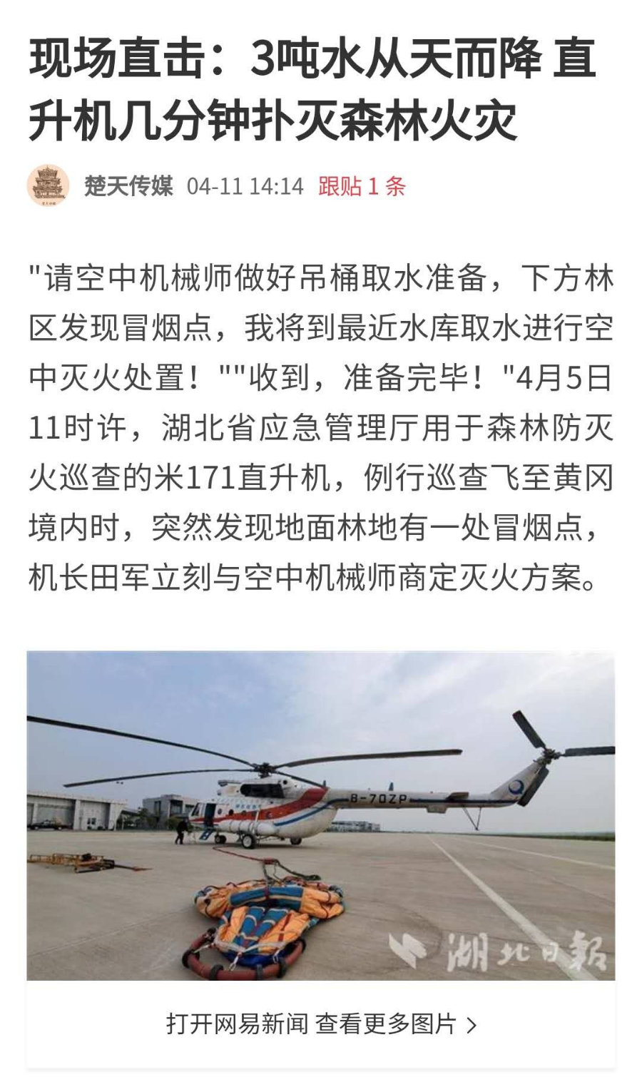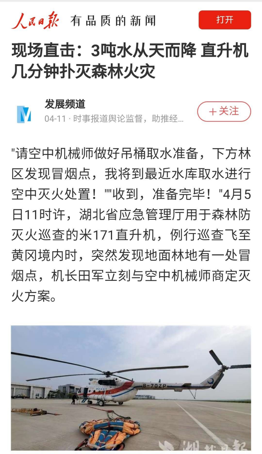 ▲ 人民日报等十余个新媒体平台集中报道《现场直击:3吨水从天而降 直升机几分钟扑灭森林火灾》//////////