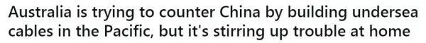 “挤掉中国电信巨头华为后,澳大利亚想为几个南太平洋国家铺设海底电缆,不想却首先在国内遇到了麻烦。”英国路透社在7月31日的一条报道中揭露了澳大利亚正面临的尴尬境地,及其国内正在酝酿的一场民意危机。