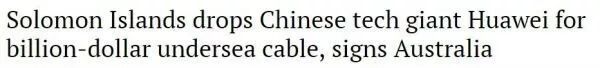 “澳大利亚及其邻国所罗门群岛将就建设一条4000公里的高速海底互联网电缆签署协议,该协议已将中国踢出局”彼时的澳洲新闻网带着“胜利”的口吻如此写道而澳大利亚SBS新闻网则将其描述为南太贫困国家“通讯的重大飞跃”。