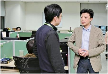 图为2012年曹刚接受媒体采访海归创业10年,到头股份仅值18万