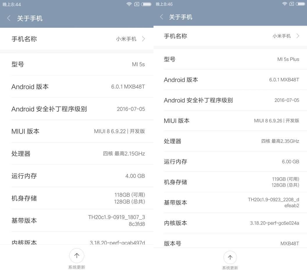 我们拿到的5s/5s Plus分别是4+128GB/6+128GB版,核心配置的差异主要体现在CPU频率和RAM大小