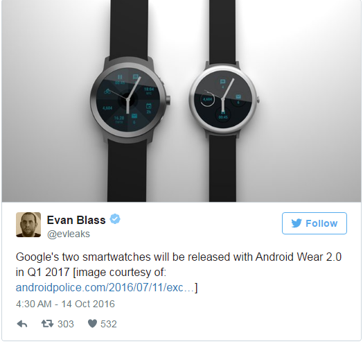 在推出自有品牌智能手机Pixel系列之后,谷歌进军硬件市场的步伐丝毫没有放松的迹象。近日,有传闻称谷歌即将于2017年第一季度推出搭载Android Wear 2.0系统的自有品牌智能手表,产品代号“神仙鱼”和“剑鱼”。
